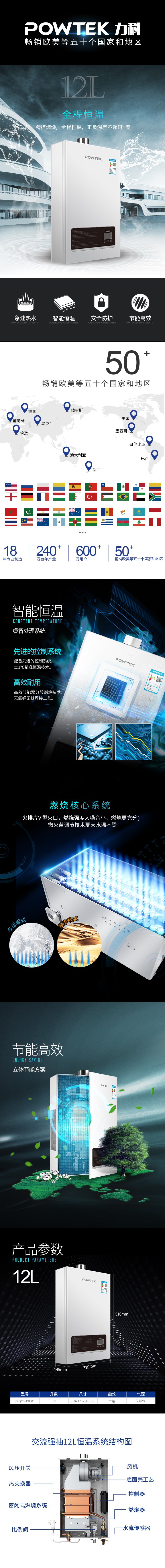 力科(kē)(POWTEK)12升交流強抽燃氣熱水器 天然氣 全程恒溫高(gāo)效節能 JSQ23-12EH01 12升
